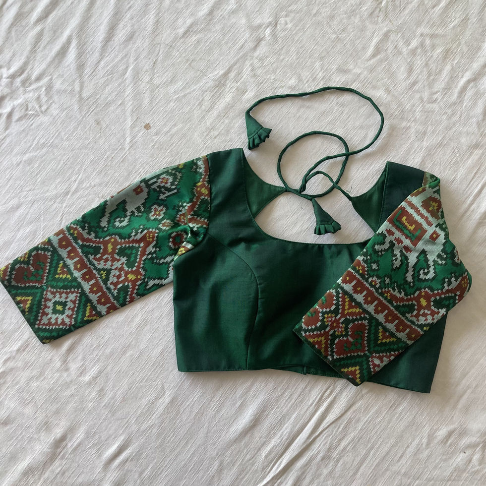 On the other hand,the brides who wish for an extreamely heavy heritage look can pair the blouse with heavy ethnic sarees and wedding lehenghas. One can also prefer a seedha palla saree to go with this patola blouse.