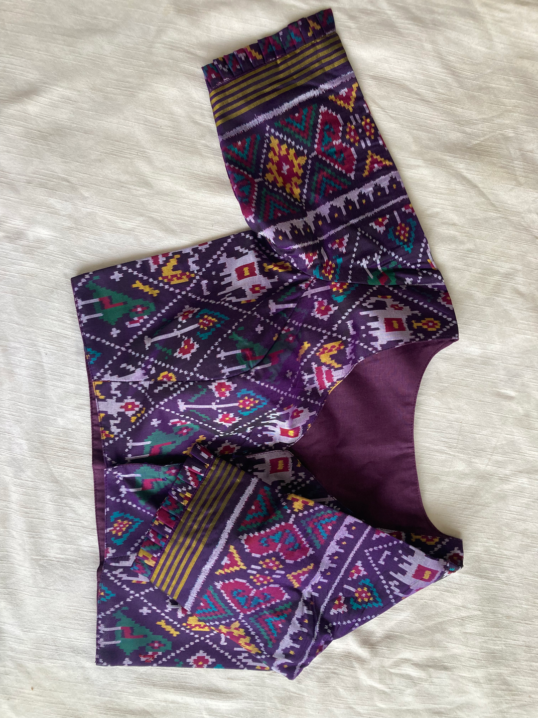 On the other hand,the brides who wish for an extreamely heavy heritage look can pair the blouse with heavy ethnic sarees and wedding lehenghas. One can also prefer a seedha palla saree to go with this patola blouse.